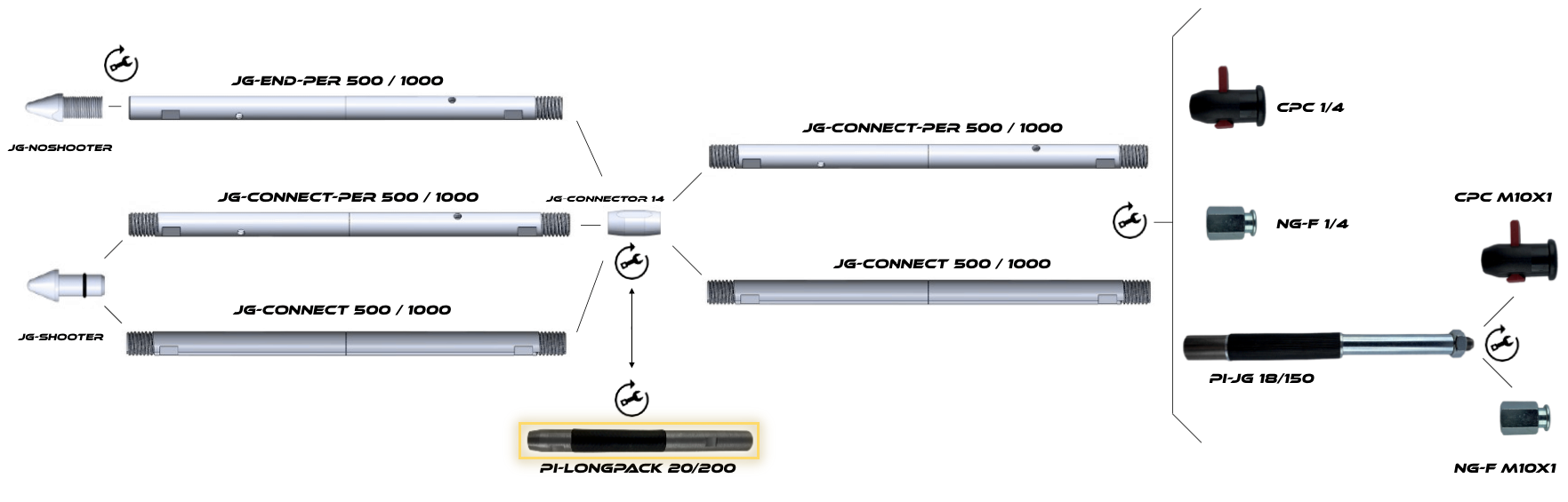 Injection into the ground behind a 120 cm wall? With the JG-CONNECT full lance, you can extend it by any length. In addition its front end with spearhead and perforated lance will compact the soil behind the wall and if necessary even deeper.